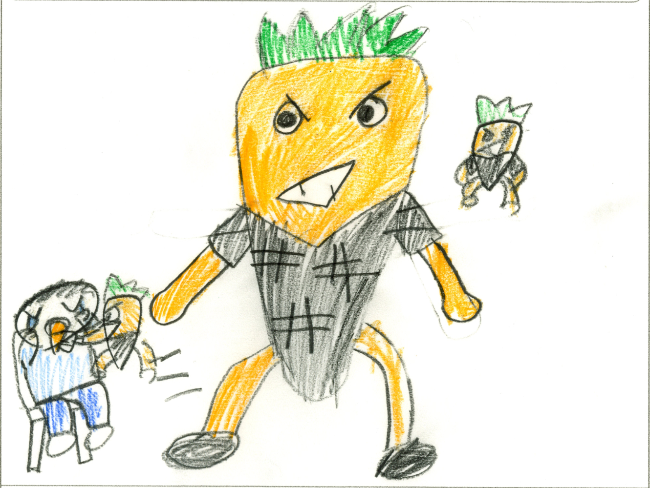 にんじんにんじゃは、にんじんがきらいな人にぶんしんしてからはやくさささっときてにんじんをわざとたべさせる。